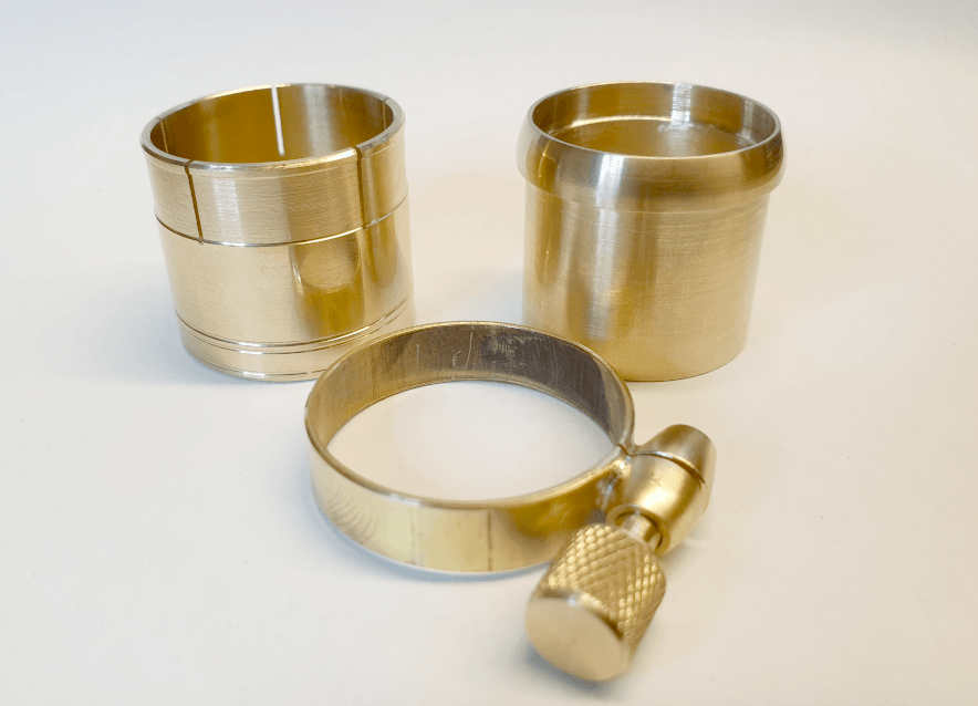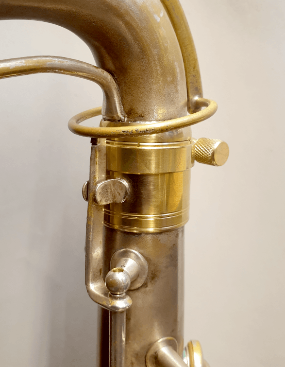Neben den Originalmaßen inkl. des innen konisch verlaufenden Zapfens wurde die Klemmung im Stile von SML-Saxophonen ausgeführt.